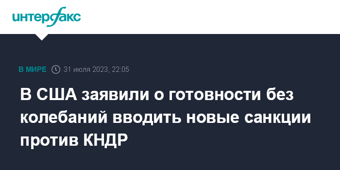 Москва. 31 июля. INTERFAX.RU - Вашингтон без колебаний введет новые ограничительные меры против Северной Кореи, сообщил в понедельник представитель Госдепартамента Мэттью Миллер, комментируя контакты Пхеньяна и Москвы.