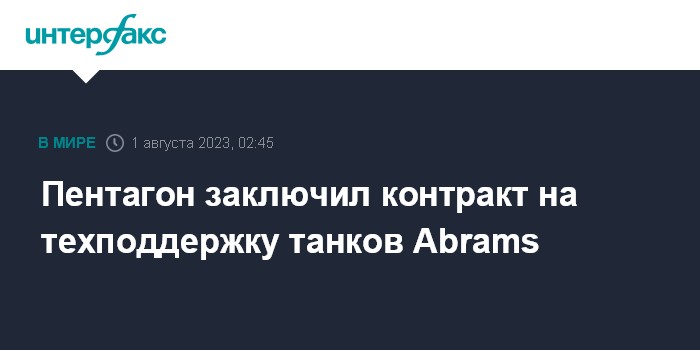 Москва. 1 августа. INTERFAX.RU - Компания General Dynamics получила контракт на $33,8 млн на техническую поддержку танков Abrams с финансированием из бюджета армии США и средств военной помощи Украине, сообщает Пентагон.