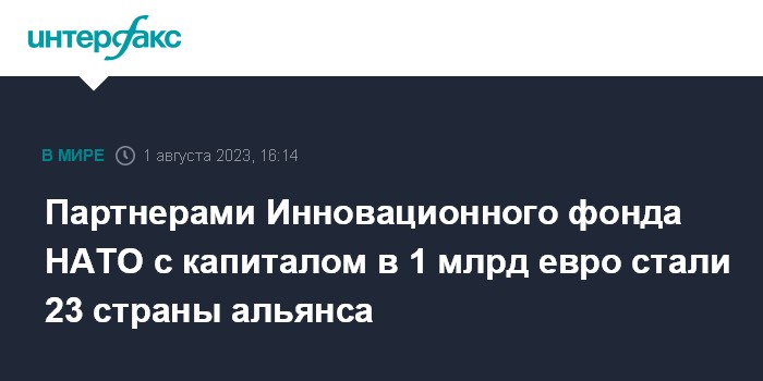 Москва. 1 августа. INTERFAX.RU - 23 страны НАТО официально стали партнерами Инновационного фонда альянса с капиталом в объеме 1 млрд евро, сообщила во вторник пресс-служба организации.