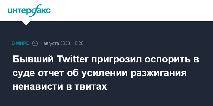 Бывший Twitter пригрозил оспорить в суде отчет об усилении разжигания ненависти в твитах