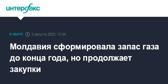Москва. 2 августа. INTERFAX.RU - Запасов газа Молдавии хватит минимум до конца 2023 года, заявил член административного совета молдавского госпредприятия Energocom Александр Слусарь.