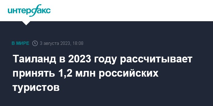 Таиланд в 2023 году рассчитывает принять 1,2 млн российских туристов