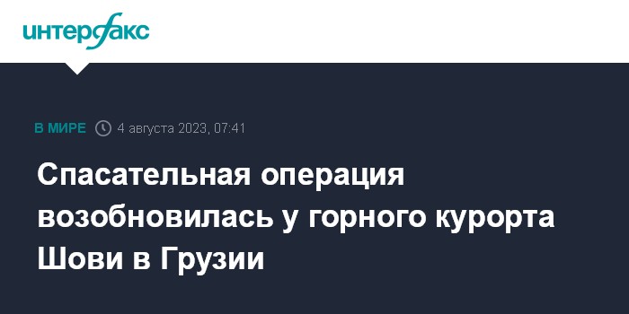 Москва. 4 августа. INTERFAX.RU - Спасательная операция с рассветом в пятницу возобновилась в зоне бедствия на территории горного курорта Шови, где сошел оползень.