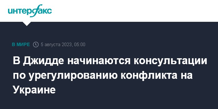 Москва. 5 августа. INTERFAX.RU - В Саудовской Аравии в субботу стартуют консультации вокруг мирного урегулирования на Украине, в которых примут участие представители 30 стран мира.