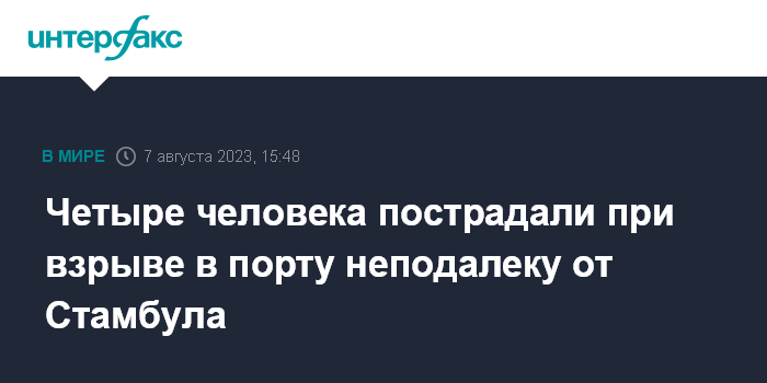 Москва. 7 августа. INTERFAX.RU - По меньшей мере четыре человека получили ранения при взрыве в турецком порту Дериндже, который расположен неподалеку от Стамбула, сообщают ближневосточные СМИ.