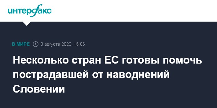 Москва. 8 августа. INTERFAX.RU - Австрия, Германия, Франция, Хорватия, Чехия и Словакия предложили помощь Словении, пострадавшей от сильнейших за последние 30 лет наводнений, передает во вторник агентство EFE.