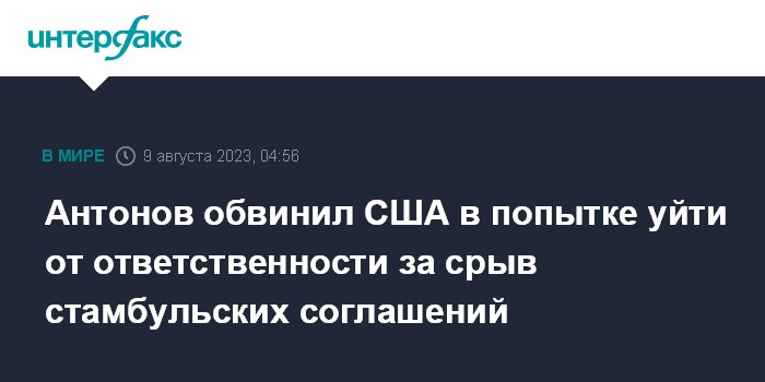 Антонов обвинил США в попытке уйти от ответственности за срыв стамбульских соглашений