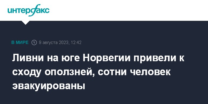 Ливни на юге Норвегии привели к сходу оползней, сотни человек эвакуированы
