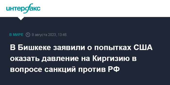 В Бишкеке заявили о попытках США оказать давление на Киргизию в вопросе санкций против РФ