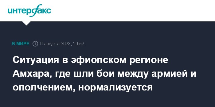 Ситуация в эфиопском регионе Амхара, где шли бои между армией и ополчением, нормализуется