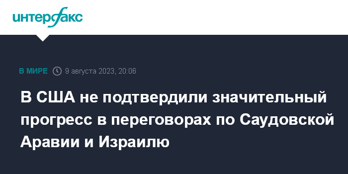 В США не подтвердили значительный прогресс в переговорах по Саудовской Аравии и Израилю