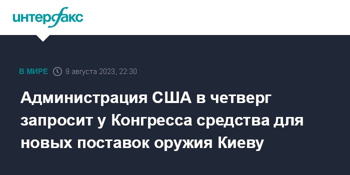 Москва. 9 августа. INTERFAX.RU - Администрация президента США Джо Байдена в четверг, по-видимому, направит в Конгресс запрос о выделении дополнительных финансовых средств на поставки вооружений Украине, сообщает в среду Politico со ссылкой на источники.