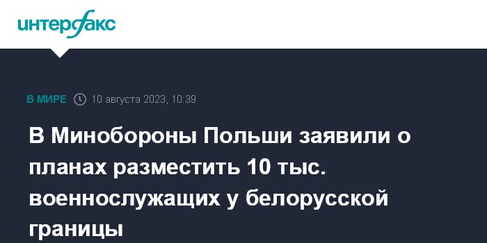Москва. 10 августа. INTERFAX.RU - Польша планирует разместить у границ Белоруссии около 10 тысяч военных, сообщил министр национальной обороны страны Мариуш Блащак.