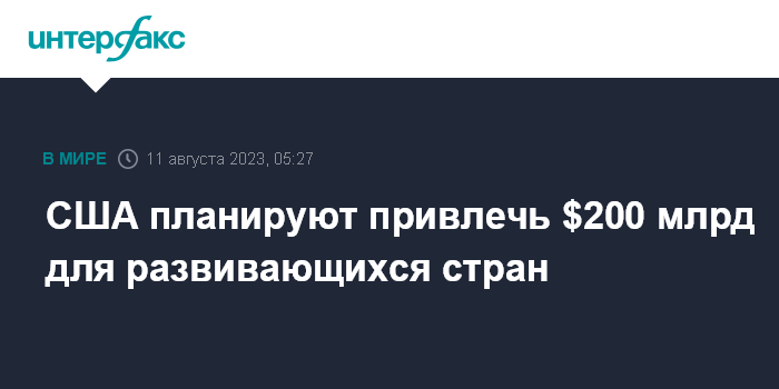 Москва. 11 августа. INTERFAX.RU - США планируют привлечь $200 млрд для развивающихся стран, включая Украину, заявила глава американского Минфина США Джанет Йеллен.