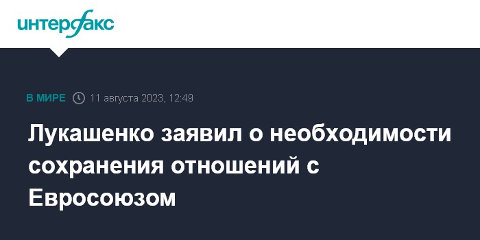 Москва. 11 августа. INTERFAX.RU - Президент Белоруссии Александр Лукашенко заявил о необходимости сохранения отношений с западными странами.