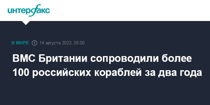 Москва. 14 августа. INTERFAX.RU - В 2021 и 2022 годах военно-морские силы (ВМС) Великобритании проследили за прохождением свыше 100 российских военных кораблей, сообщает Daily Express со ссылкой на британского замминистра обороны Аннабель Голди.