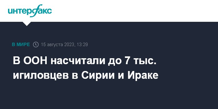 Москва. 15 августа. INTERFAX.RU - До 5-7 тыс. человек все еще состоят в рядах террористической группировки "Исламское государство" (ИГ, запрещена в РФ) на территории Ирака и Сирии, сообщает Associated Press (AP) со ссылкой на доклад экспертов ООН.