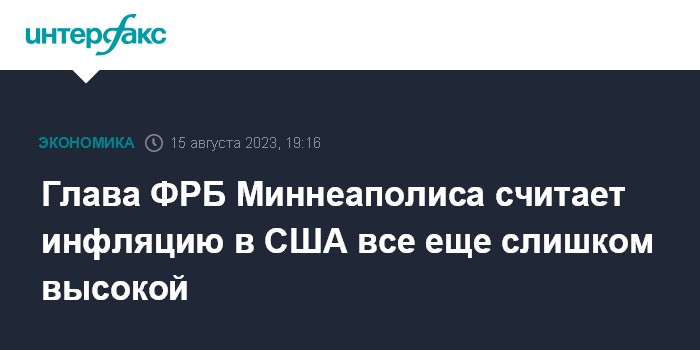 Глава ФРБ Миннеаполиса считает инфляцию в США все еще слишком высокой