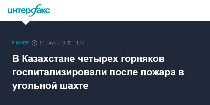 Москва. 17 августа. INTERFAX.RU - В Казахстане после эвакуации из горящей угольной шахты "Казахстанская" АО "АрселорМиттал Темиртау" (АМТ) четырех горняков доставили в больницы, сообщили в акимате Карагандинской области.