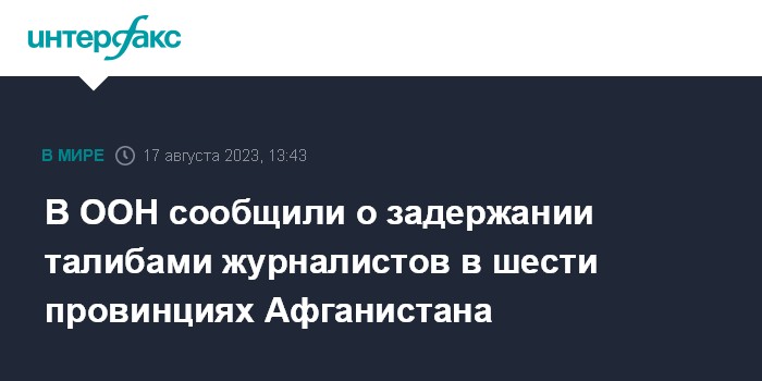 Москва. 17 августа. INTERFAX.RU - Миссия ООН по содействию Афганистану (МООНСА) заявила, что контролирующее страну движение "Талибан" (запрещенная в России террористическая организация) за последние 10 дней задержало работников СМИ в шести провинциях Афганистана.
