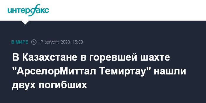 Москва. 17 августа. INTERFAX.RU - В угольной шахте АО "АрселорМиттал Темиртау" "Казахстанская", где утром загорелся конвейер, нашли тела двух горняков, поиски еще троих продолжаются, сообщила пресс-служба акимата Карагандинской области.