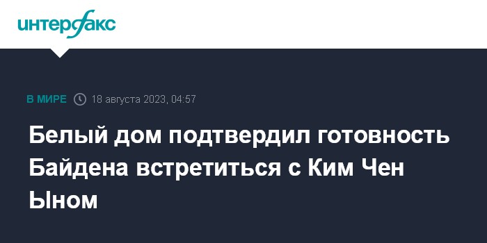 Москва. 18 августа. INTERFAX.RU - Президент США Джо Байден готов встретиться с северокорейским лидером Ким Чен Ыном без предварительных условий, чтобы обсудить денуклеаризацию Корейского полуострова, заявил в интервью агентству "Киодо" представитель Белого дома Джон Кирби.