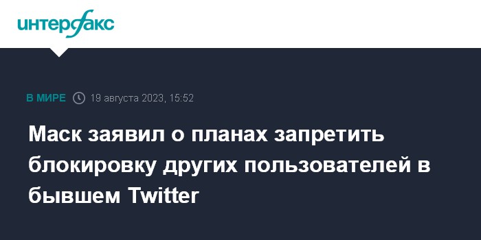 Москва. 19 августа. INTERFAX.RU - Владелец соцсети X (бывший Twitter) Илон Маск на своей странице заявил о планах отключить функцию блокировки других пользователей.