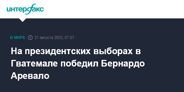 Москва. 21 августа. INTERFAX.RU - Бернардо Аревало - сын экс-президента Хуана Хосе Аревало - избран новым президентом Гватемалы.