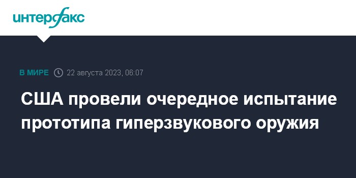 Москва. 22 августа. INTERFAX.RU - Американские военные провели очередное испытание прототипа гиперзвуковой ракеты воздушного базирования AGM-183A, сообщило издание Defense News со ссылкой на ВВС США.