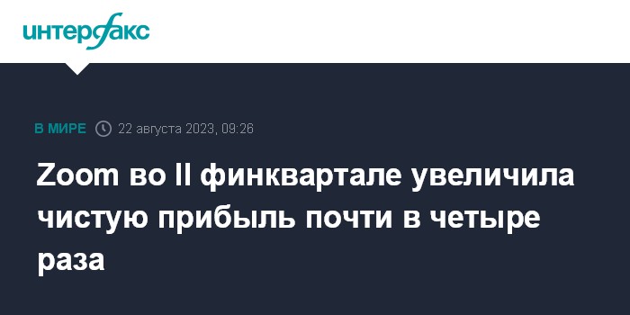 Москва. 22 августа. INTERFAX.RU - Американская Zoom Video Communications Inc., предоставляющая услуги удаленной конференц-связи, зафиксировала рост чистой прибыли почти в четыре раза во втором квартале текущего финансового года, причем скорректированная прибыль и выручка оказались лучше прогнозов рынка.