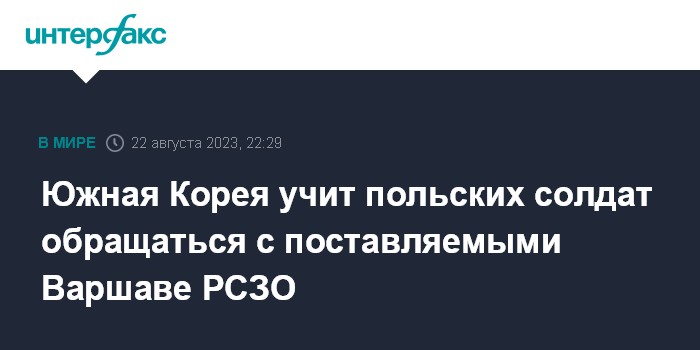 Москва. 22 августа. INTERFAX.RU - Южная Корея проводит обучение польских солдат обращению с реактивными системами залпового огня (РСЗО) K239 Chunmoo, сообщила во вторник пресс-служба министерства народной обороны Польши.