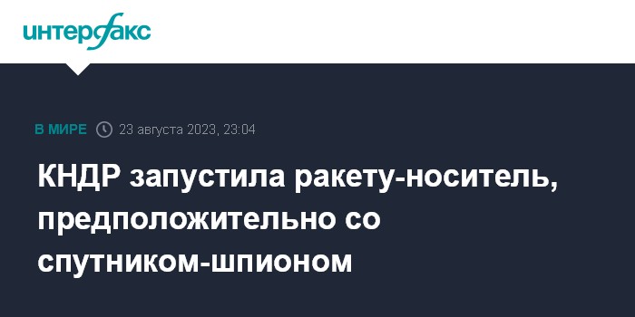 Москва. 23 августа. INTERFAX.RU - Северная Корея в среду запустила в сторону юга ракету-носитель со спутником, сообщает "Ренхап" со ссылкой на южнокорейских военных.