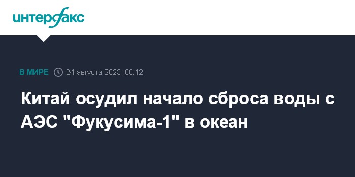 Москва. 24 августа. INTERFAX.RU - Китай осуждает решение Японии сбросить в Тихий океан воду, которая использовалась для охлаждения реакторов аварийной АЭС "Фукусима-1", заявил МИД КНР.