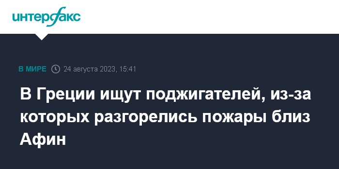 Москва. 24 августа. INTERFAX.RU - Некоторые из греческих пожаров на северо-востоке страны и недалеко от Афин, с которыми пока не могут справиться пожарные, были начаты намеренно, сообщает Associated Press в четверг.
