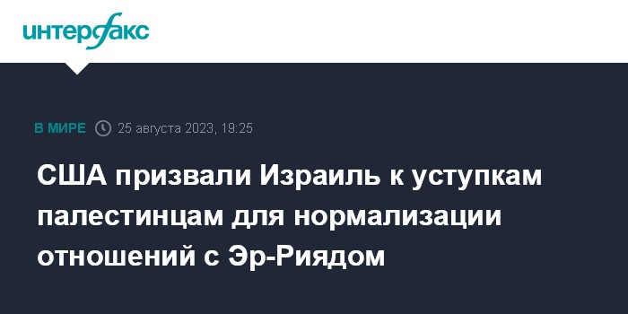 США призвали Израиль к уступкам палестинцам для нормализации отношений с Эр-Риядом