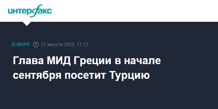 Москва. 27 августа. INTERFAX.RU - Министр иностранных дел Греции Йоргос Герапетритис в начале сентября отправится с рабочей поездкой в Турцию, где встретится с главой МИД этой страны Хаканом Фиданом, сообщает в воскресенье агентство Anadolu.