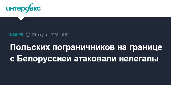 Москва. 29 августа. INTERFAX.RU - Группа нелегальных мигрантов совершила нападение на польских пограничников на границе с Белоруссией, на место происшествия были направлены водометы. Об этом сообщила во вторник пресс-служба Пограничной стражи Польши.