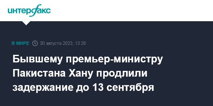 Бывшему премьер-министру Пакистана Хану продлили задержание до 13 сентября