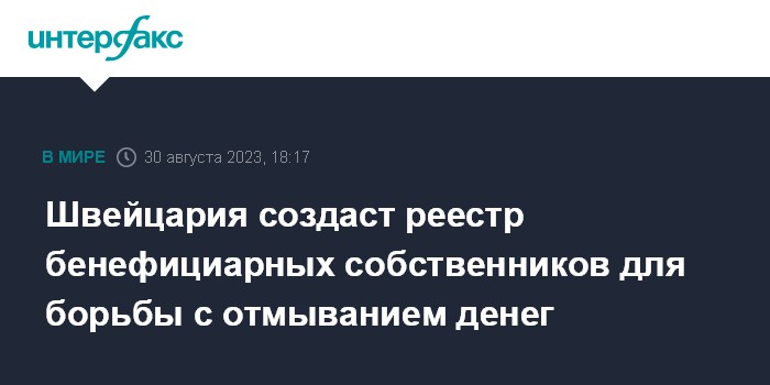 Швейцарское правительство осенью минувшего года поручило Минфину подготовить законопроект о реестре бенефициарных собственников к середине 2023 года, когда его планировалось направить на обсуждение.