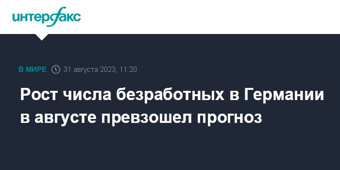 Москва. 31 августа. INTERFAX.RU - Количество безработных в Германии в августе увеличилось на 18 тыс., сообщило Федеральное агентство по трудоустройству этой страны.