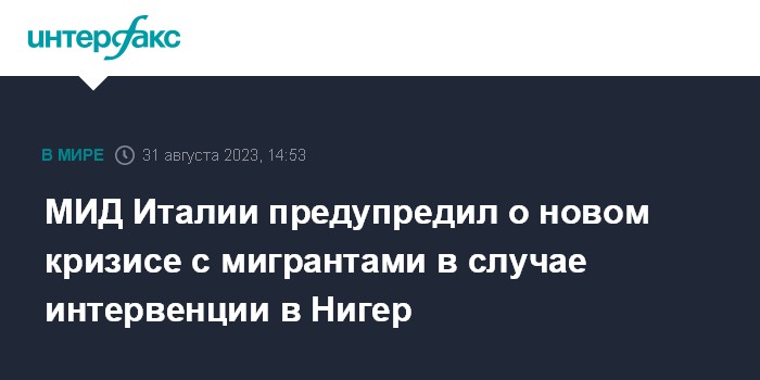 МИД Италии предупредил о новом кризисе с мигрантами в случае интервенции в Нигер