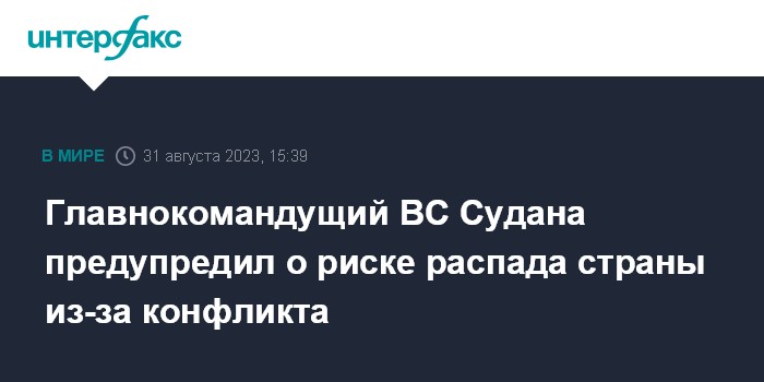Главнокомандущий ВС Судана предупредил о риске распада страны из-за конфликта