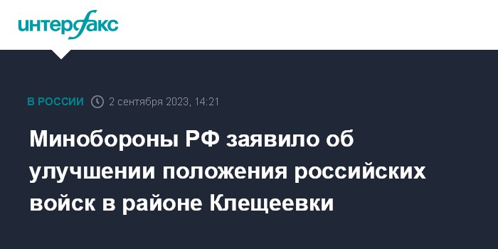 Минобороны РФ заявило об улучшении положения российских войск в районе Клещеевки