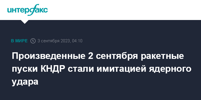 Произведенные 2 сентября ракетные пуски КНДР стали имитацией ядерного удара