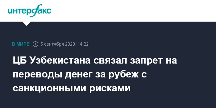 ЦБ Узбекистана связал запрет на переводы денег за рубеж с санкционными рисками