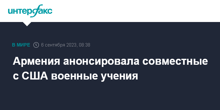 "В рамках подготовки к участию в международных миротворческих миссиях c 11 по 20 сентября в Армении на базе учебного центра миротворческой бригады Минобороны Армении "Зар" пройдут совместные армяно-американские военные учения "Партнер Орел-2023" (EAGLE PARTNER 2023)", - заявили в пресс-службе Минобороны Армении.