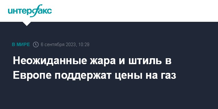 Москва. 6 сентября. INTERFAX.RU - Не по сезону жаркая погода установилась на всей территории Европы. Средняя температура воздуха на этой неделе в регионе до 6 градусов выше, чем годом ранее. При этом еще неделю назад прогноз погоды предсказывал сезонное понижение температуры. Увеличение расхода электроэнергии на кондиционирование усугубляется слабым ветром. Это сократит возможности ветрогенерации и окажет поддержку ценам на газ.