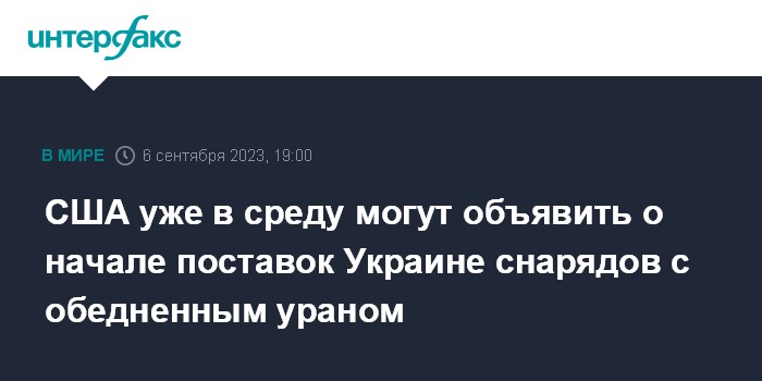 Москва. 6 сентября. INTERFAX.RU - Администрация США планирует позднее в среду объявить о начале американских поставок Украине боеприпасов с обедненным ураном, сообщает Politico со ссылкой на неназванного американского чиновника, знакомого с ситуацией.