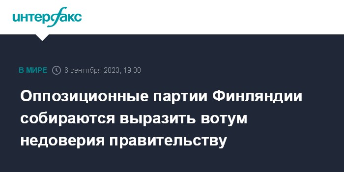 Оппозиционные партии Финляндии собираются выразить вотум недоверия правительству