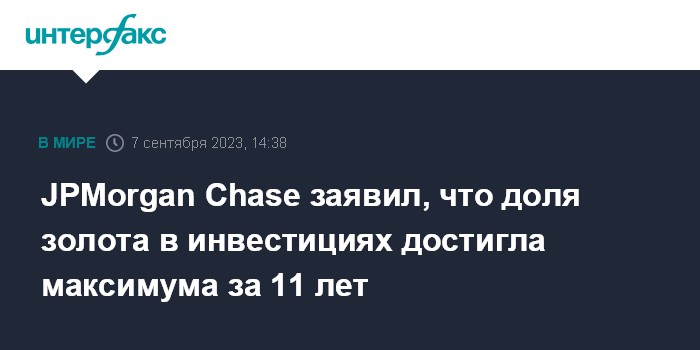 JPMorgan Chase заявил, что доля золота в инвестициях достигла максимума за 11 лет